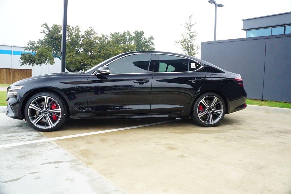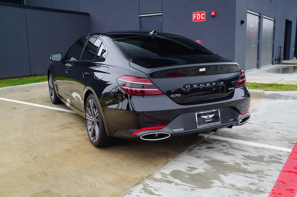 ABS brakes, Alloy wheels, Electronic Stability Control, Front dual zone A/C, Heated door mirrors, Heated front seats, Heated Multi-Adjustable Front Bucket Seats, Illuminated entry, Low tire pressure warning, Remote keyless entry, Traction control. 2.5T Sport Prestige Vik Black 2025 Genesis G70 AWD 8-Speed Automatic I4