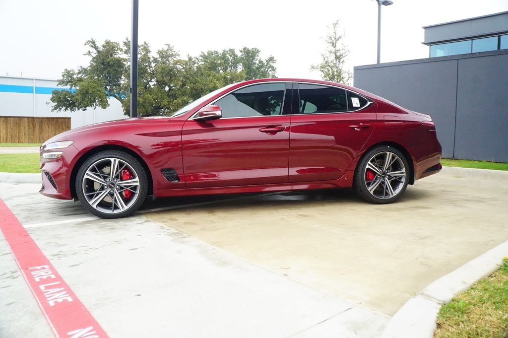 ABS brakes, Alloy wheels, Electronic Stability Control, Front dual zone A/C, Heated door mirrors, Heated front seats, Heated Multi-Adjustable Front Bucket Seats, Illuminated entry, Low tire pressure warning, Remote keyless entry, Traction control. 2.5T Sport Prestige Cavendish Red 2025 Genesis G70 RWD 8-Speed Automatic I4